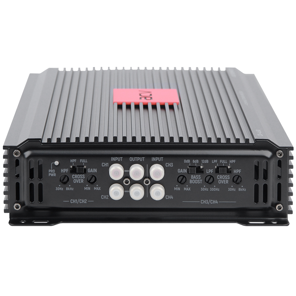 Четырехканальный автомобильный усилитель класса АВ со ступенчатым Bass Boost, и диапазоном 10Гц ~ ЗОкГц. Используется в системах с 4/3/2 конфигурациями, с сопротивлением 2 или 4 Ом. Вы получите высокое качество звука и раскроете потенциал каждого компонента.