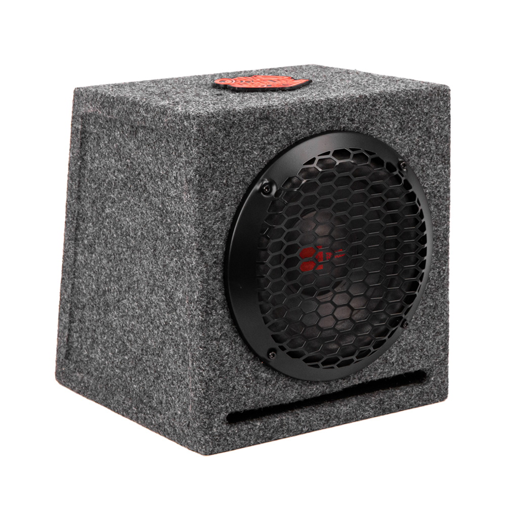 Фазоинверторный корпус точно рассчитан под НЧ динамик 8 дюймов, тяжелый и массивный. Для НЧ динамика использована целлюлоза с пропиткой, крупный резиновый подвес обеспечивает необходимую амплитуду движений. Внутри звуковая катушка 1,5 дюймов, магнит 20 унций, чувствительность 86 ±2 дБ. Тандем современных комплектующих с проверенными технологиями позволяют демонстрировать SPL 105 ±2 дБ.