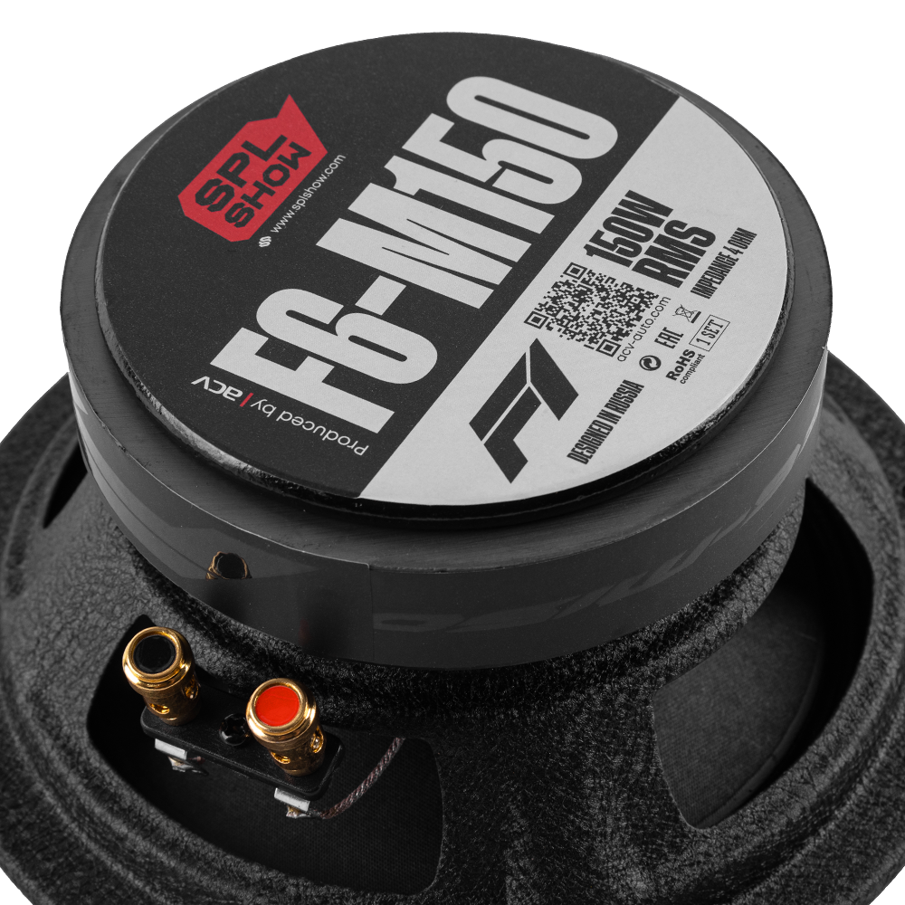 Акустика SPL SHOW серии F1 для систем автозвука и высокого звукового давления. Предназначена для построения громкого фронта в автомобиле, имеет превосходный запас мощности и широкий диапазон частот. Акустика SPL Show F1 обладает номинальной мощностью 150Вт и чувствительностью 97дБ, что позволяет получить максимально громкий и чистый звук с мощным панчем. Частотная характеристика варьируется от 125Гц до 12кГц, что делает акустику идеальной для чистого и точного воспроизведения вокала, гитар и других звуков среднего диапазона.