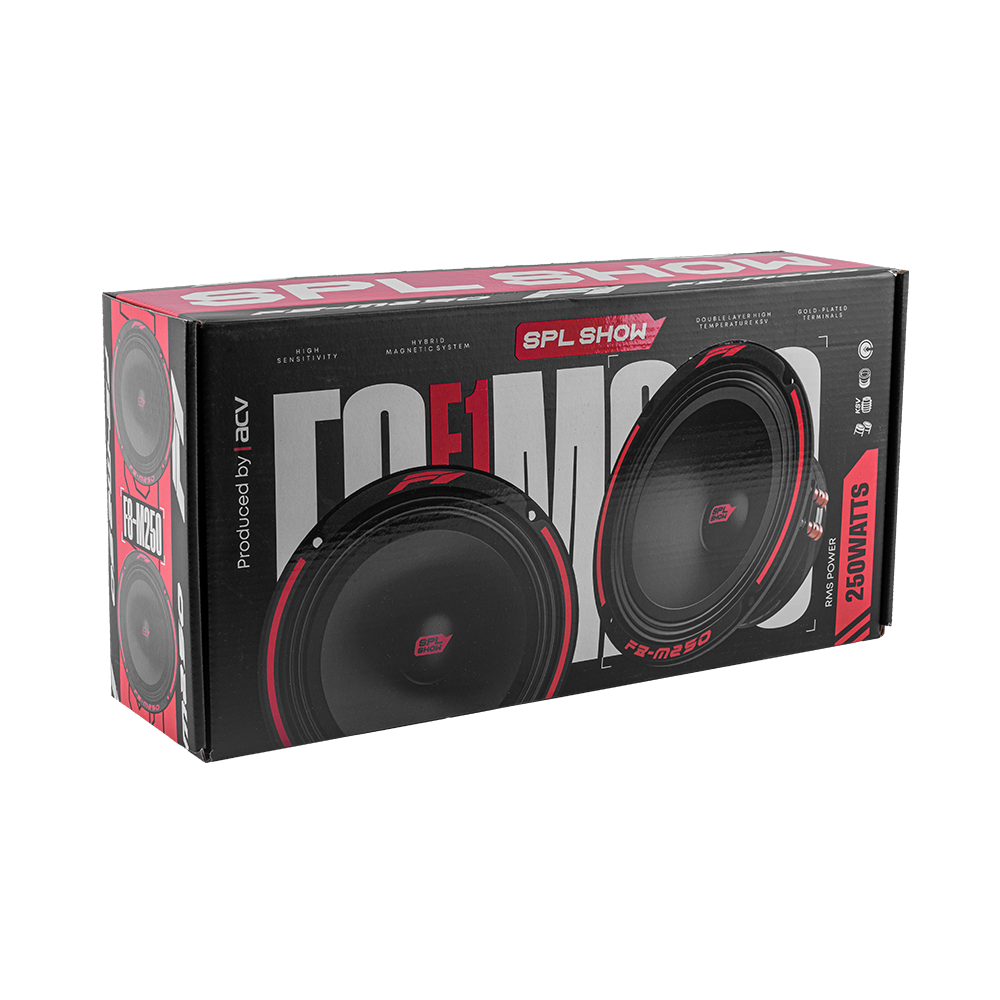 Акустика SPL SHOW серии F1 для систем автозвука и высокого звукового давления. Предназначена для построения громкого фронта в автомобиле, имеет превосходный запас мощности и широкий диапазон частот. Акустика SPL Show F1 обладает номинальной мощностью 250Вт и чувствительностью 99,6дБ, что позволяет получить максимально громкий и чистый звук с мощным панчем. Частотная характеристика варьируется от 90Гц до 12кГц, что делает акустику идеальной для чистого и точного воспроизведения вокала, гитар и других звуков среднего диапазона.