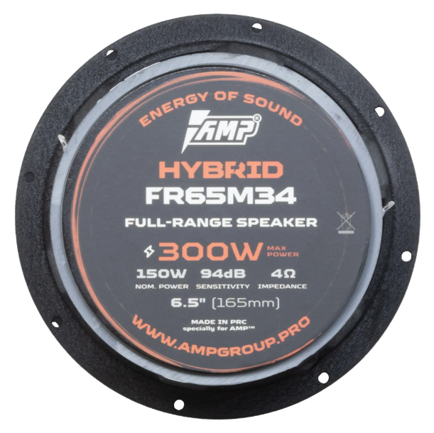 AMP Hybrid FR65M34 – это флагманская модель в линейке эстрадной акустики, которая отличается еще большим размером неодимового и ферритового магнитов по сравнению с FR65M20. Благодаря увеличенной мощности магнитного поля, диффузор был усилен, что положительно сказалось на басовом потенциале динамика. Эти динамики могут с легкостью использоваться как мидбасовые в двух- и трехполосных системах, обеспечивая высокое качество звука и максимальную мощность.