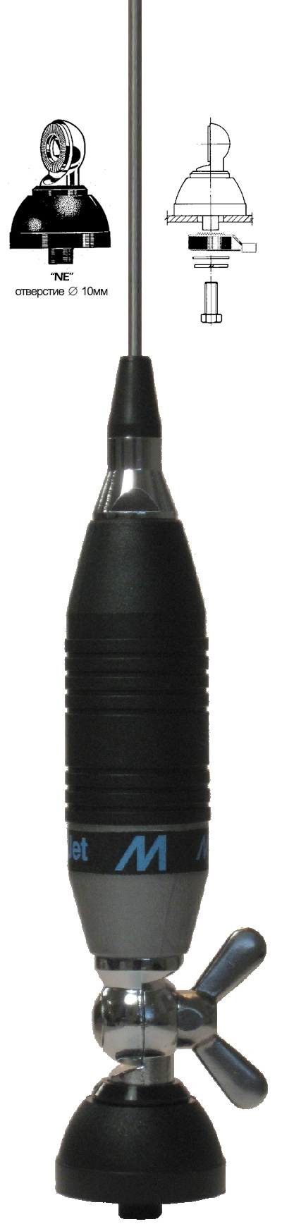 Автомобильная антенна MegaJet MJ-Super 9 с длиной 1450 мм обеспечивает качественную работу антенны на приём-передачу. Угол наклона антенны регулируется с помощью винта-барашка.