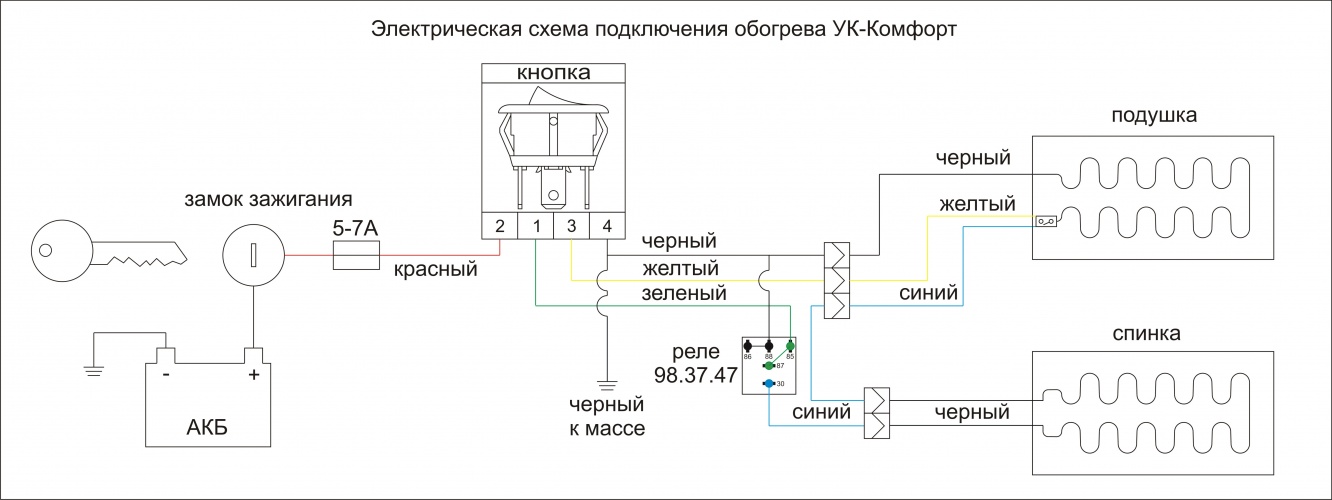 Установочный комплект подогрева сидений "Емеля УК-комфорт" для стационарного монтажа под обшивку сиденья с термореле для защиты от перегрева.