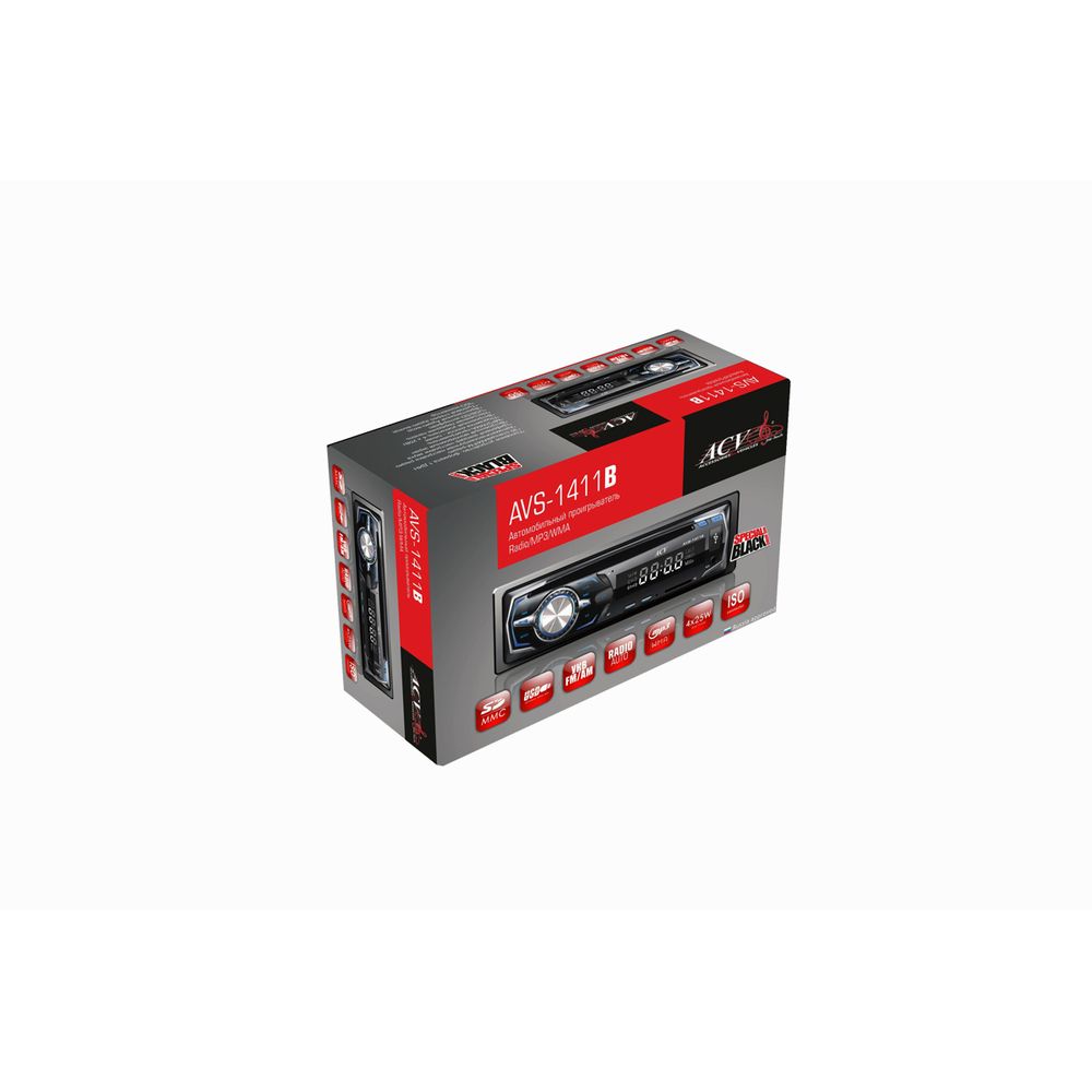 Цифровой ресивер от компании ACV с поддержкой самых популярных функций и форматов. Он читает flash и SD карты, воспроизводит файлы MP3 и WMA, а также имеет радиотюнер, работающий в FM, АМ диапазонах. Это оптимальный вариант магнитолы для автовладельцев, желающих оснастить свое транспортное средство музыкальным проигрывателем, не переплачивая за дополнительные опции.