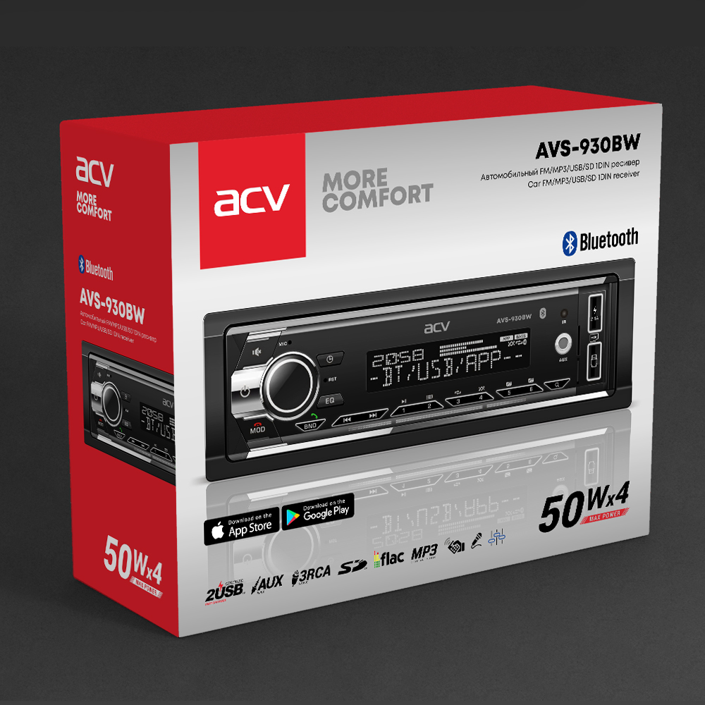 Автомобильный ресивер с BLUETOOTH, USB, белой подсветкой ACV AVS-930BW