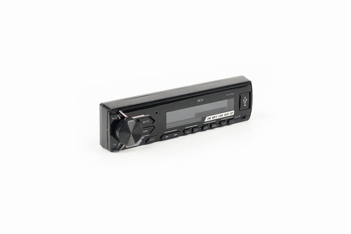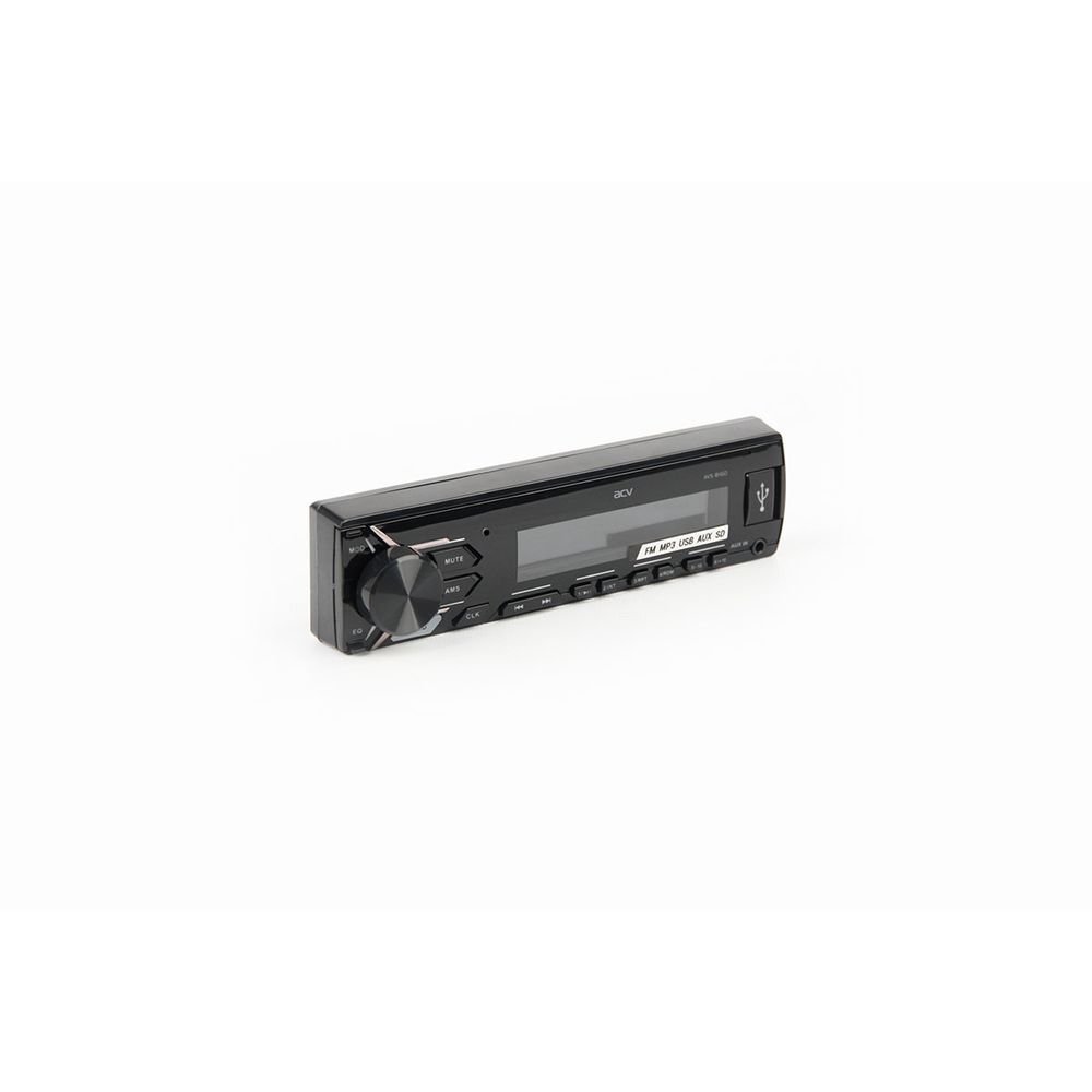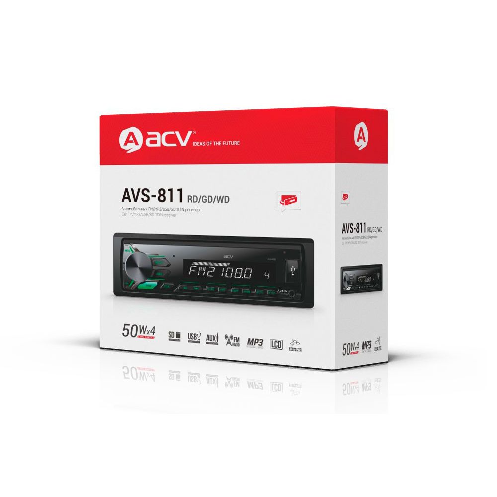 Новая бюджетная магнитола ACV с проигрывателем FM/MP3/USB/SD и белой подсветкой кнопок. Передняя панель съемная, встроенный усилитель 50 Вт. Есть RCA и регулировка тембра ±8дБ.