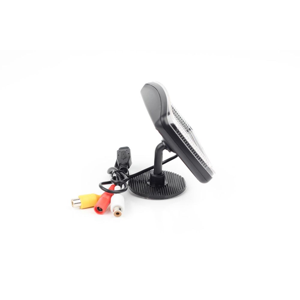 Монитор со складной конструкцией для камеры заднего вида, который устанавливается на приборную панель автомобиля. Он имеет экран 4,3 дюйма, разрешение 272х480 и поддерживает PAL/NTSC. На картинке хорошо видны любые детали.