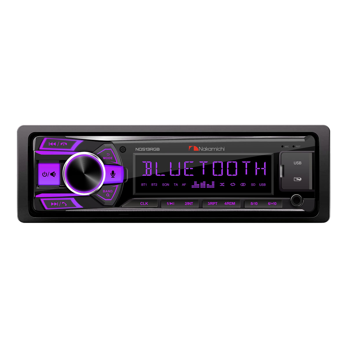 Nakamichi NQ513RGB – универсальный цифровой медиа-ресивер формата 1DIN, сочетающий в себе богатую функциональность, продуманный интерфейс и фирменное японское качество Nakamichi. Устройство поддерживает FM/AM радио, Bluetooth 5.1 с профилями A2DP и Hands Free, USB и microSD воспроизведение форматов MP3, FLAC, WAV и WMA, а также зарядку устройств через отдельный USB-порт. Встроенный усилитель 4×50 Вт, 2 RCA-выхода, 32-полосный эквалайзер и управление со смартфона через приложение Nakamichi AMC обеспечивают гибкость настройки и отличное качество звука. Стильный дизайн с настраиваемой подсветкой кнопок (7 цветов) и удобный поворотный энкодер делают управление максимально комфортным в движении. Поддержка RDS и AM-диапазона расширяет возможности приёмника, особенно в условиях нестабильного сигнала за пределами города.