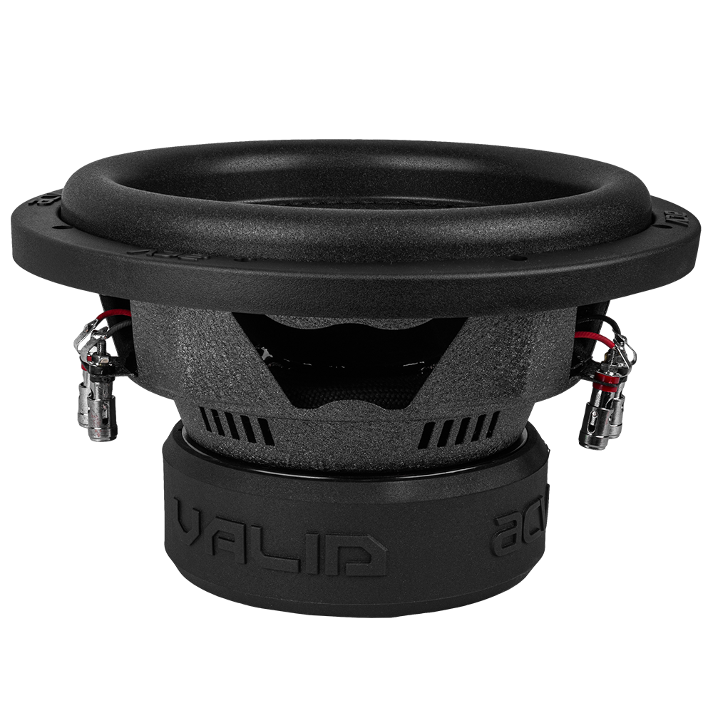 Сабвуфер ACV VALID 10 дюймов для соревнований по автозвуку и лютого повседнева. RMS 600 Вт. Высокотемпературная (до 280°C), 2,5" звуковая катушка BASV с высотой намотки 36 мм, два кольцевых магнита класса Y40, широкий пенорезиновый подвес.