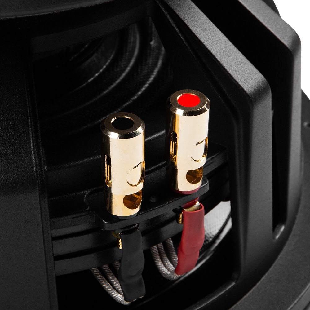 Двойная 4-дюймовая 4-слойная высокотемпературная звуковая катушка BASV с каркасом из черного анодированного алюминия c высотой намотки 75мм плоским алюминиевым проводом. Катушка с более высокими эксплуатационными характеристиками, что повышает выносливость и долговечность сабвуфера при повседневном использовании. Двойная звуковая катушка — это двойная мощность, двойная эффективность и превосходный результат!