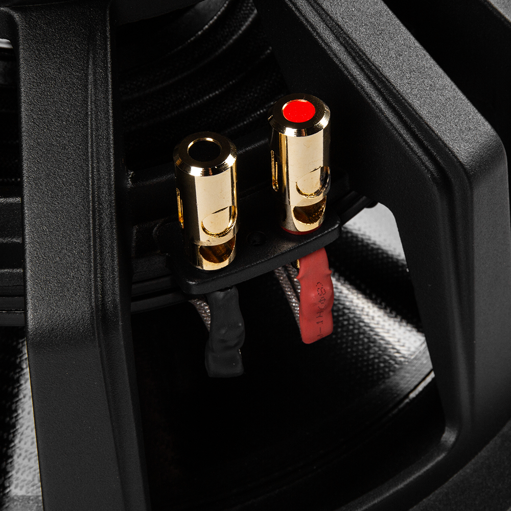 Двойная 4-дюймовая 4-слойная высокотемпературная звуковая катушка BASV с каркасом из черного анодированного алюминия c высотой намотки 75 мм плоским алюминиевым проводом. Катушка с более высокими эксплуатационными характеристиками, что повышает выносливость и долговечность сабвуфера при повседневном использовании. Двойная звуковая катушка — это двойная мощность, двойная эффективность и превосходный результат!
