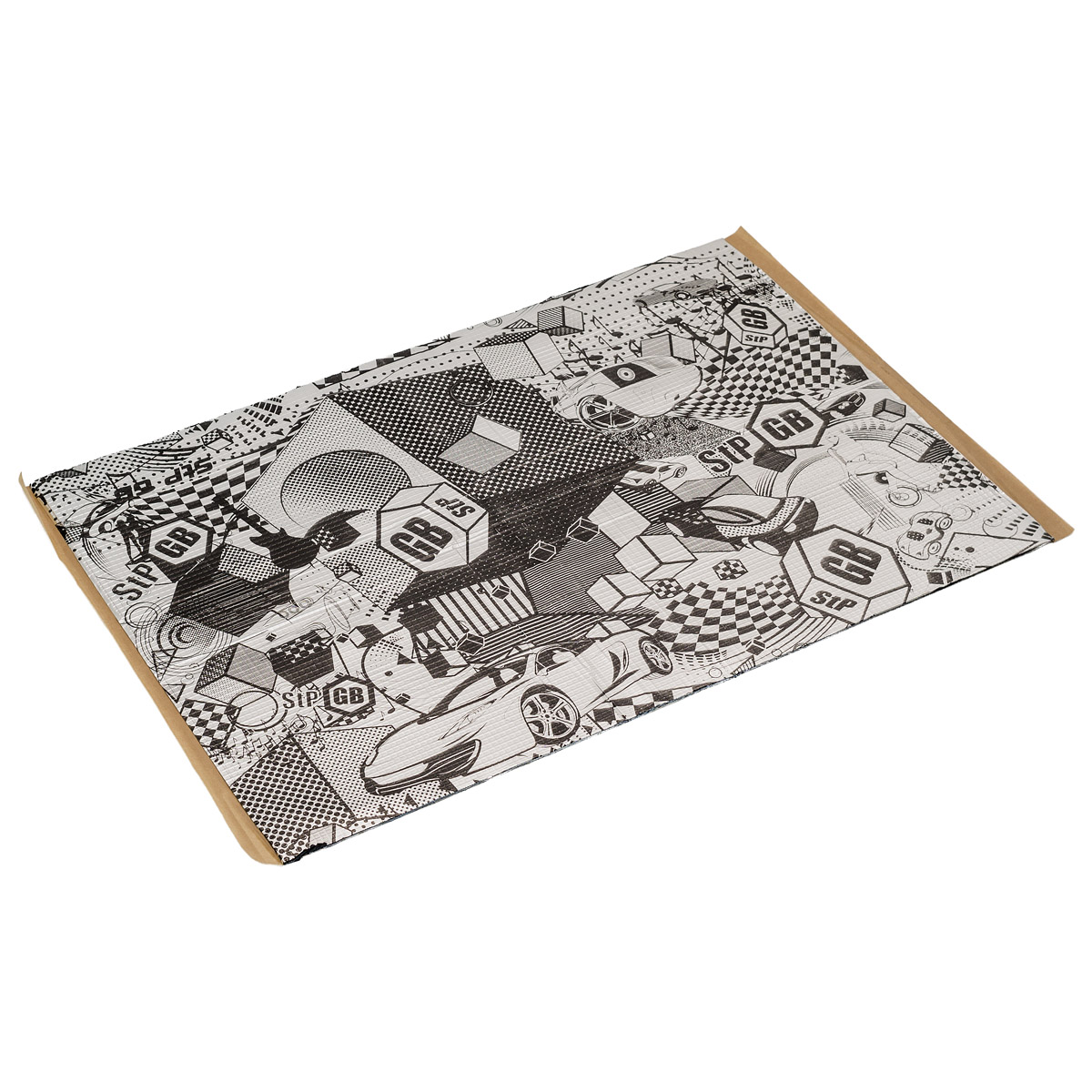 Шумоизоляция StP с размерами листа 0.75х0.47. Материал трехслойный, имеет защитный слой адгезионной бумаги. Применяется для обработки поверхностей со сложным рельефом.