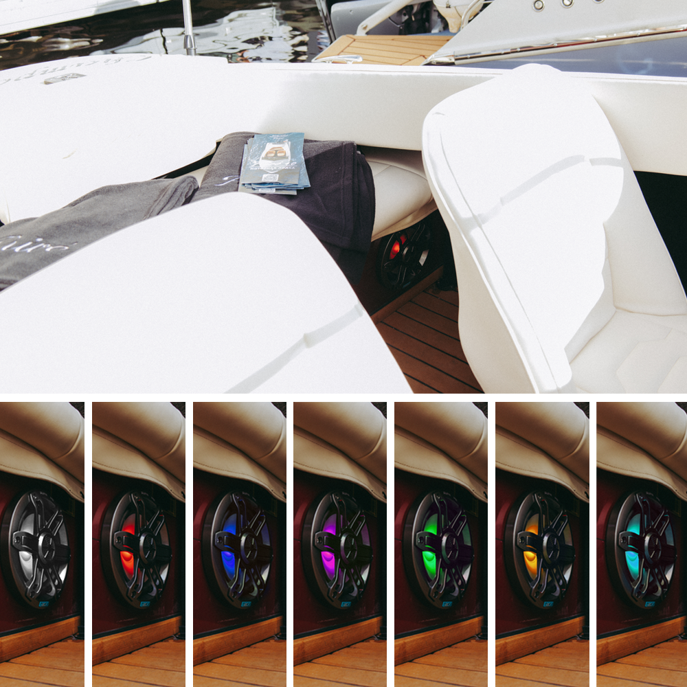Такая комбинация технических характеристик делает эту акустическую систему надежным решением для морских прогулок, яхтенных мероприятий или любых условий, требующих влагостойкого оборудования с современными возможностями подсветки и отличным звуком.